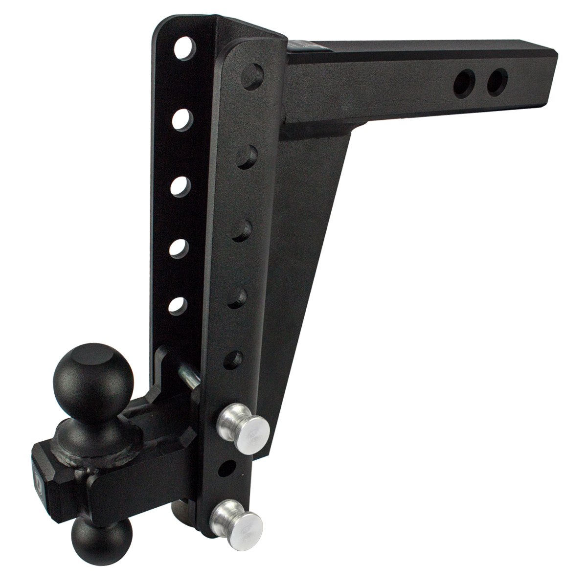 Bulletproof Hitches Heavy Duty 10” Drop hitch is a Class 4 hitch with a 22,000lb max towing capacity and 3,000lb tongue weight capacity. It features a solid steel shank with CNC chamfered edges making it easy to remove and install the hitch in any 2” receiver. This heavy-duty hitch comes standard with our solid steel 2” & 2-5/16” dual ball and a 1/2-inch-thick full-length gusset plate for reinforcement. It offers 6 easily adjustable ride heights, allowing you to tow many different trailers of different heights. This hitch is a great fit for trucks with a receiver height of 25” – 27” (level ground to the bottom of the receiver tube opening). Bulletproof Hitches are the strongest adjustable hitch on the market and the last hitch you will ever need!