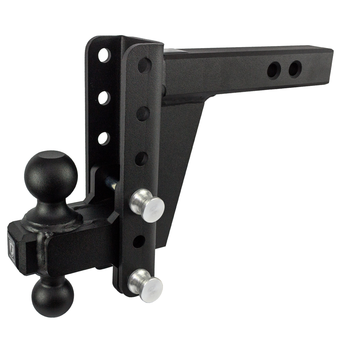 Bulletproof Hitches Heavy Duty 6” Drop hitch is a Class 4 hitch with a 22,000lb max towing capacity and 3,000lb tongue weight capacity. It features a solid steel shank with CNC chamfered edges making it easy to remove and install the hitch in any 2” receiver. This heavy-duty hitch comes standard with our solid steel 2” & 2-5/16” dual ball and a 1/2-inch-thick full-length gusset plate for reinforcement. It offers 4 easily adjustable ride heights, allowing you to tow many different trailers of different heights. This hitch is a great fit for trucks with a receiver height of 19” – 21” (level ground to the bottom of the receiver tube opening). Bulletproof Hitches are the strongest adjustable hitch on the market and the last hitch you will ever need!