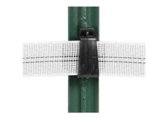 Extra locking tab enables offset to fit all T-Posts from 1 1/4″ to 1 1/2″. The pinlock allows for easy construction and wire removal. The wide jaw accommodates Equine Wire and braid products.