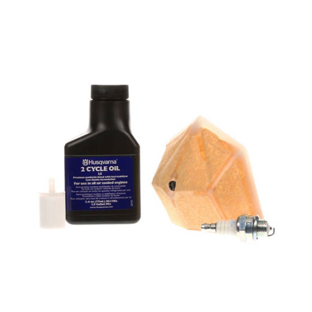• Kit includes: (1) air filter, (1) fuel filter, (1) spark plug, (1) bottle of 2-cycle engine oil