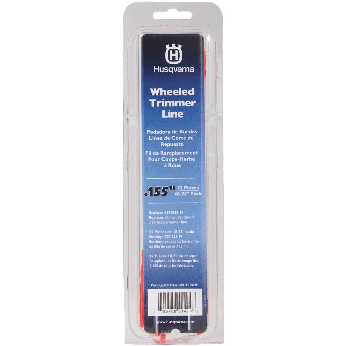Husqvarna 0.155 In. x 18.75 In. pre-cut wheeled line fits 4-cycle trimmer Model No. HU625HWT.