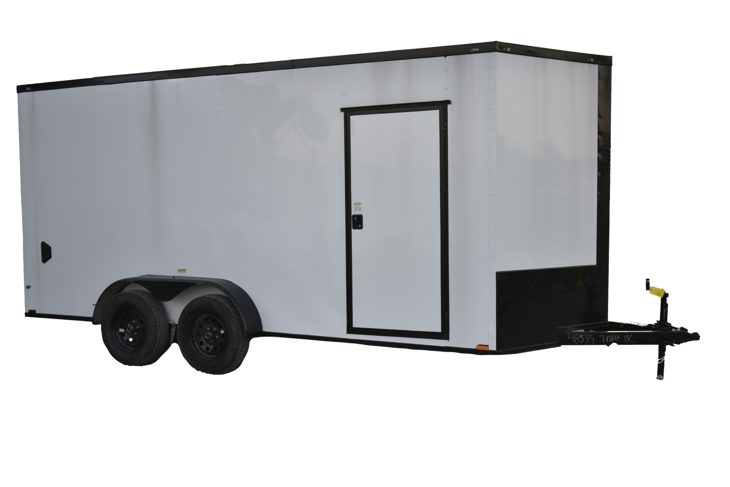 QC253 Quality 7×16 Enclosed Trailer TA White Blackout 84″